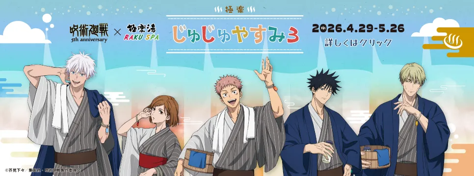 アニメ呪術廻戦5周年×極楽湯 RAKU SPAコラボ